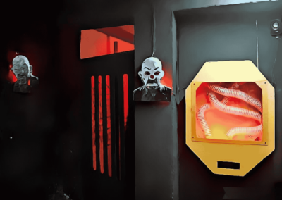 Egyedi technológiai megvalósítások, különböző érzékszervek használatát igénylő feladatok, több, a történettel összefüggő szobarész.